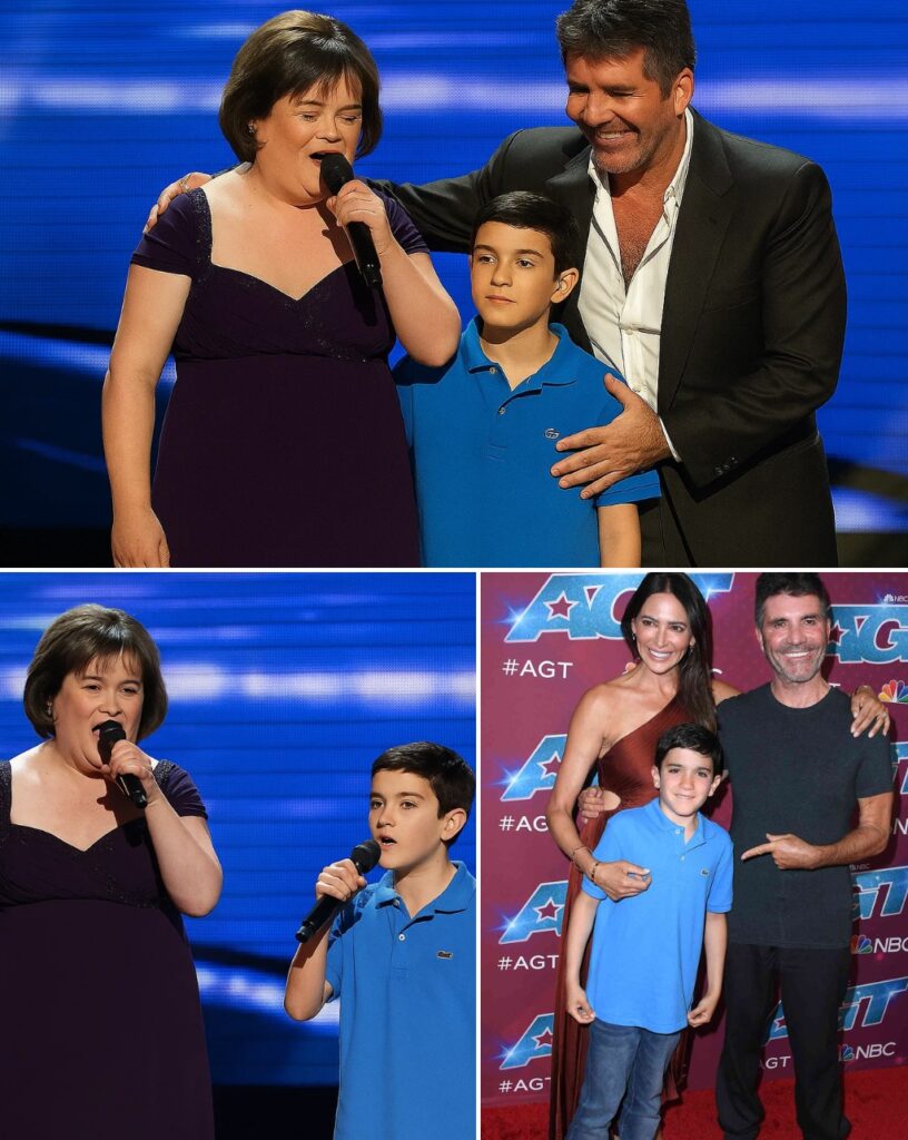 London, October 28, 2025 – In a moment that’s pure Britain’s Got Talent poetry, Susan Boyle, 64, and Simon Cowell’s 10-year-old son Eric shared a duet of “Somewhere Over the Rainbow” during a June 2025 BGT celebration special, leaving Simon—watching from the judges’ table—visibly emotional with glistening eyes. The performance, a surprise tribute to Boyle’s 2009 audition that launched her to 25 million album sales, blended her timeless contralto with Eric’s innocent soprano, creating a harmony so tender it floated like a dream. As confetti fell and the Palladium crowd rose in a standing ovation, Cowell clapped slowly, his proud smile trembling— a rare crack in the “Mr. Nasty” facade. “You’ve done it again,” he whispered backstage. With #SusanAndEric trending at 2.1 million posts, this “full-circle” wasn’t scripted— it was serendipity, echoing Boyle’s underdog magic and Cowell’s softened dad era.